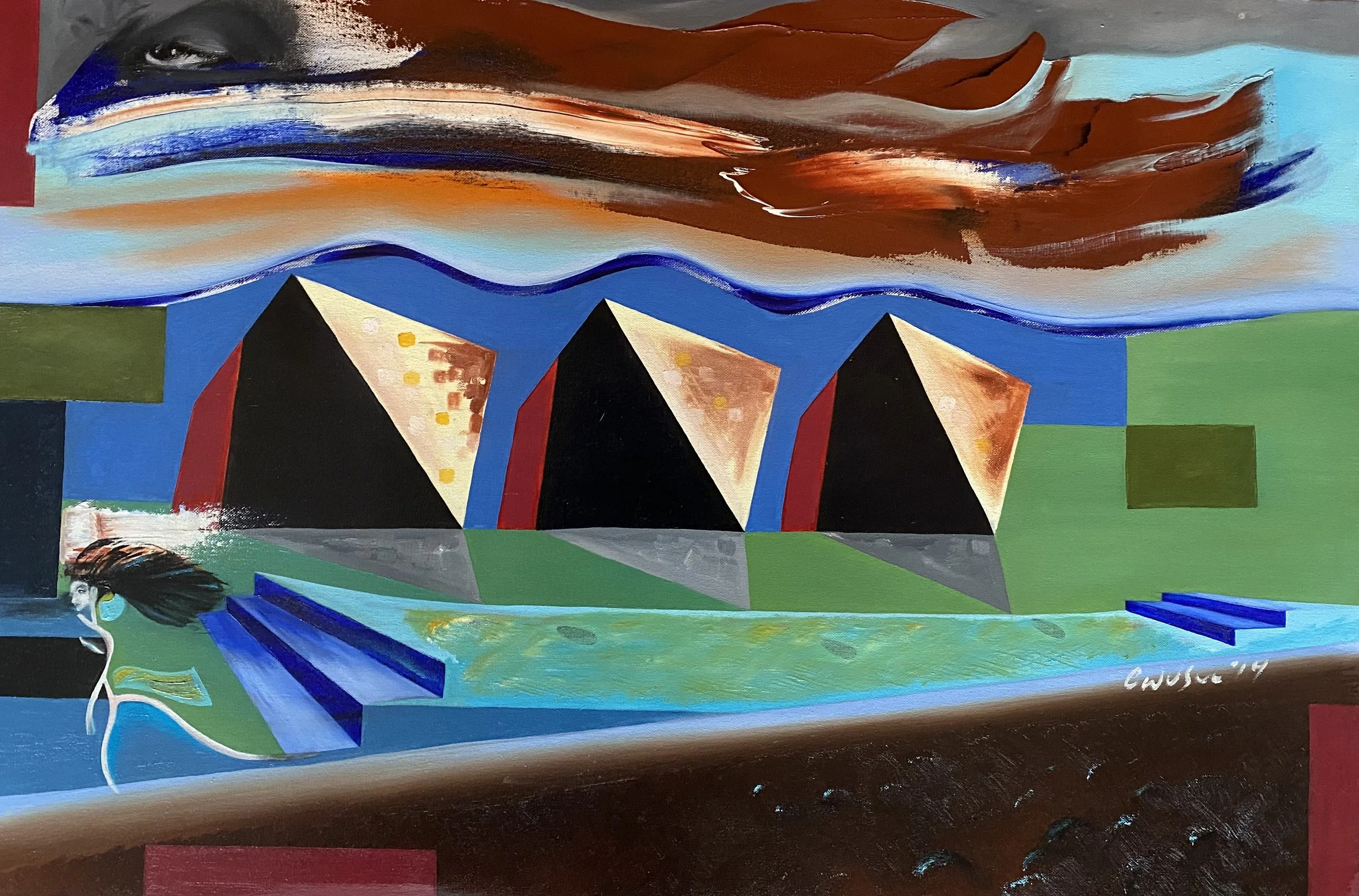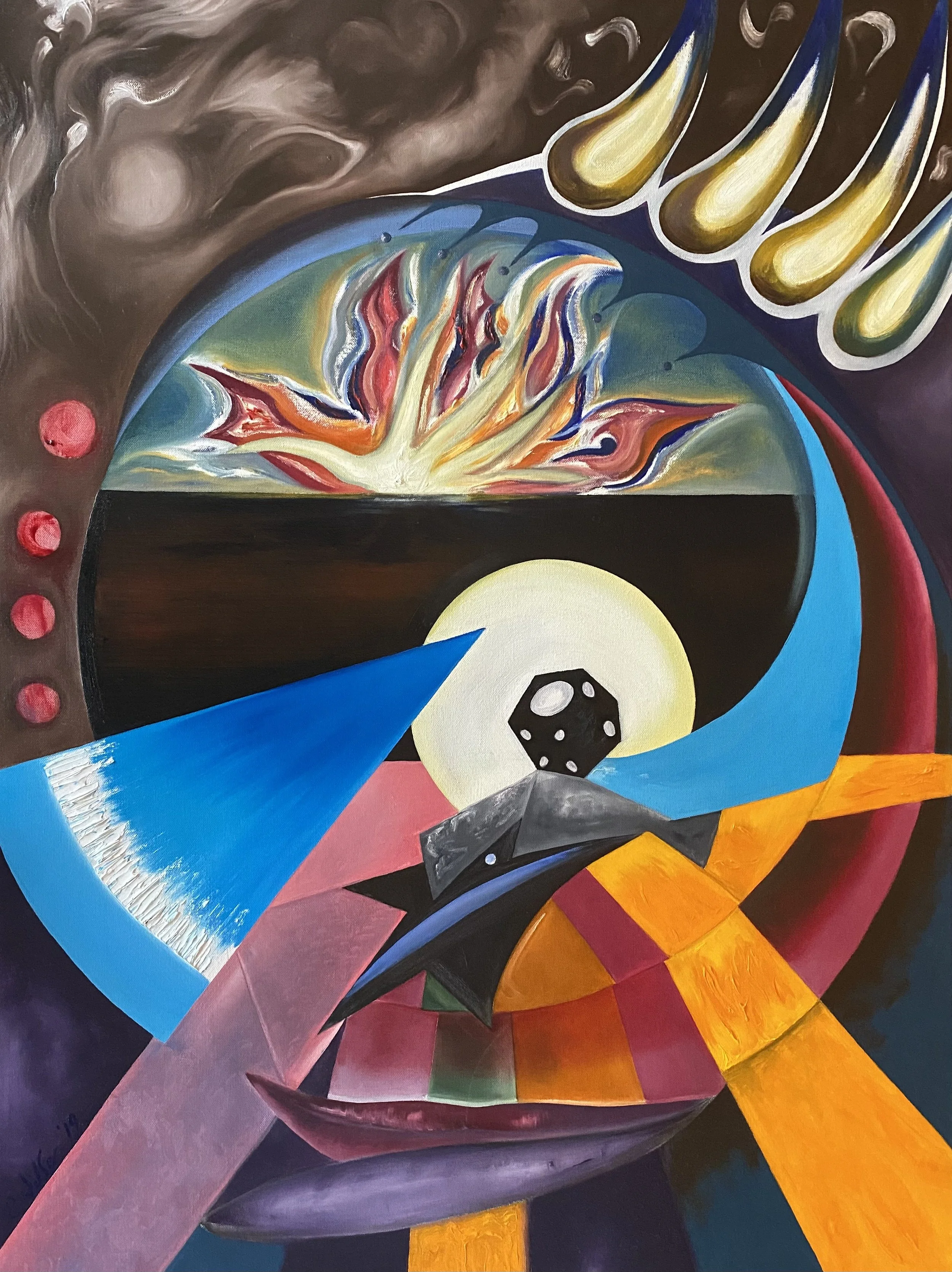 Dunedin born and educated, though a self-taught painter (oils), Cameron’s paintings have been a complement which engenders some sanity, however arguably fused with a somewhat distorted reality. These are not however the products of an altered mind but an altered view on a relentless world. In conjunction with some strokes of serendipity, these works offer a skewed sense of beauty in an attempt to reconcile both lived and perceived disruptions.