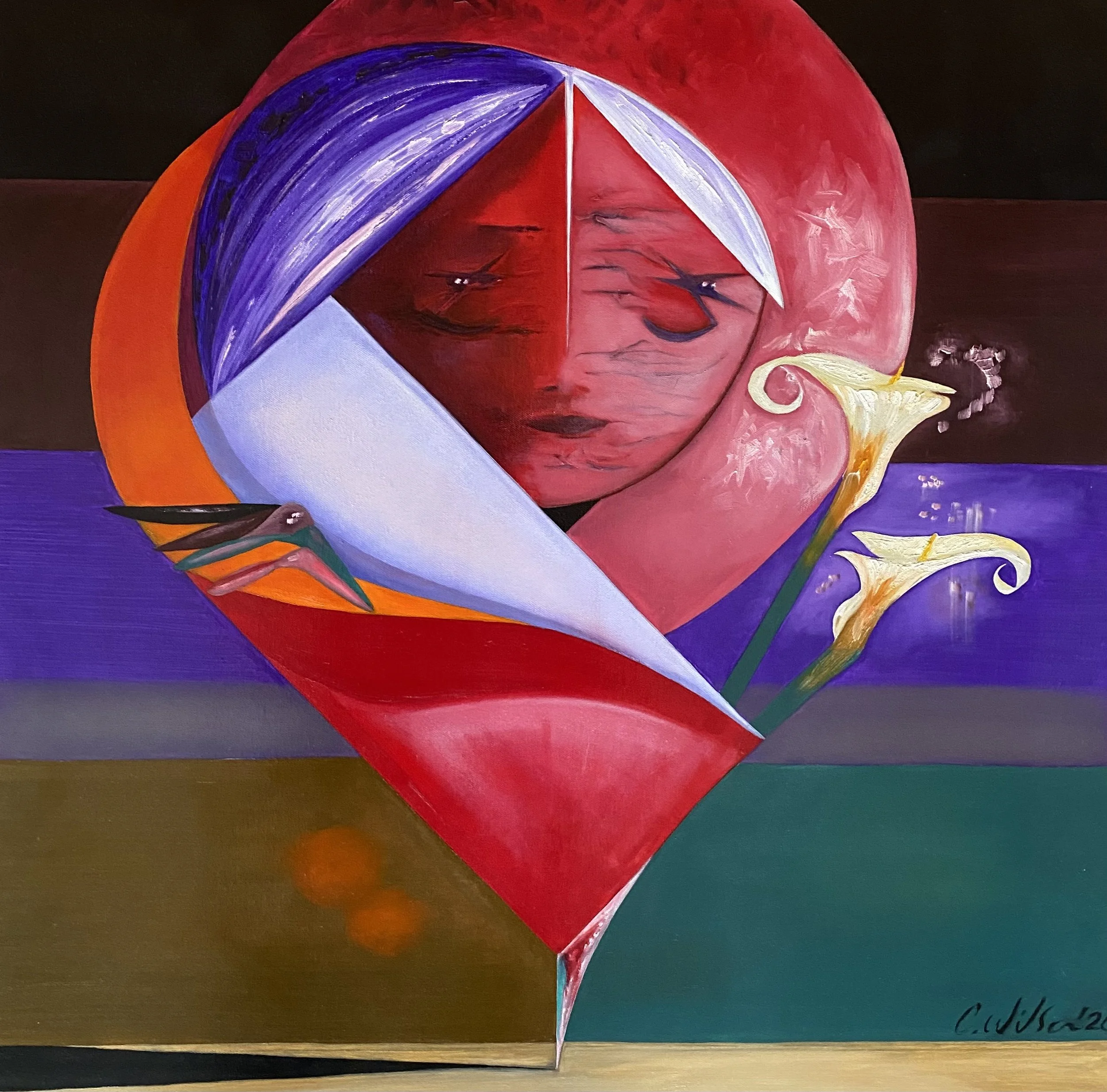 Red Moon on a Still Night - Oil on canvas, 76cm - 76cm